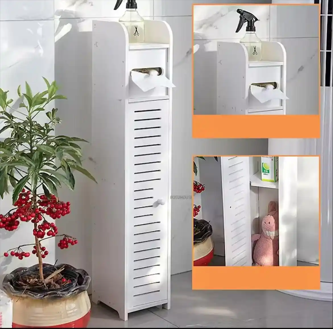 Incluye un soporte integrado para pañuelos faciales o papel higiénico en la parte media. Es una solución compacta y funcional para el almacenamiento en el baño, especialmente en espacios reducidos cerca del inodoro.
