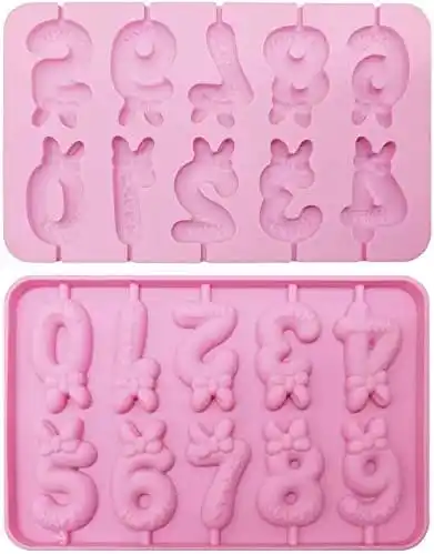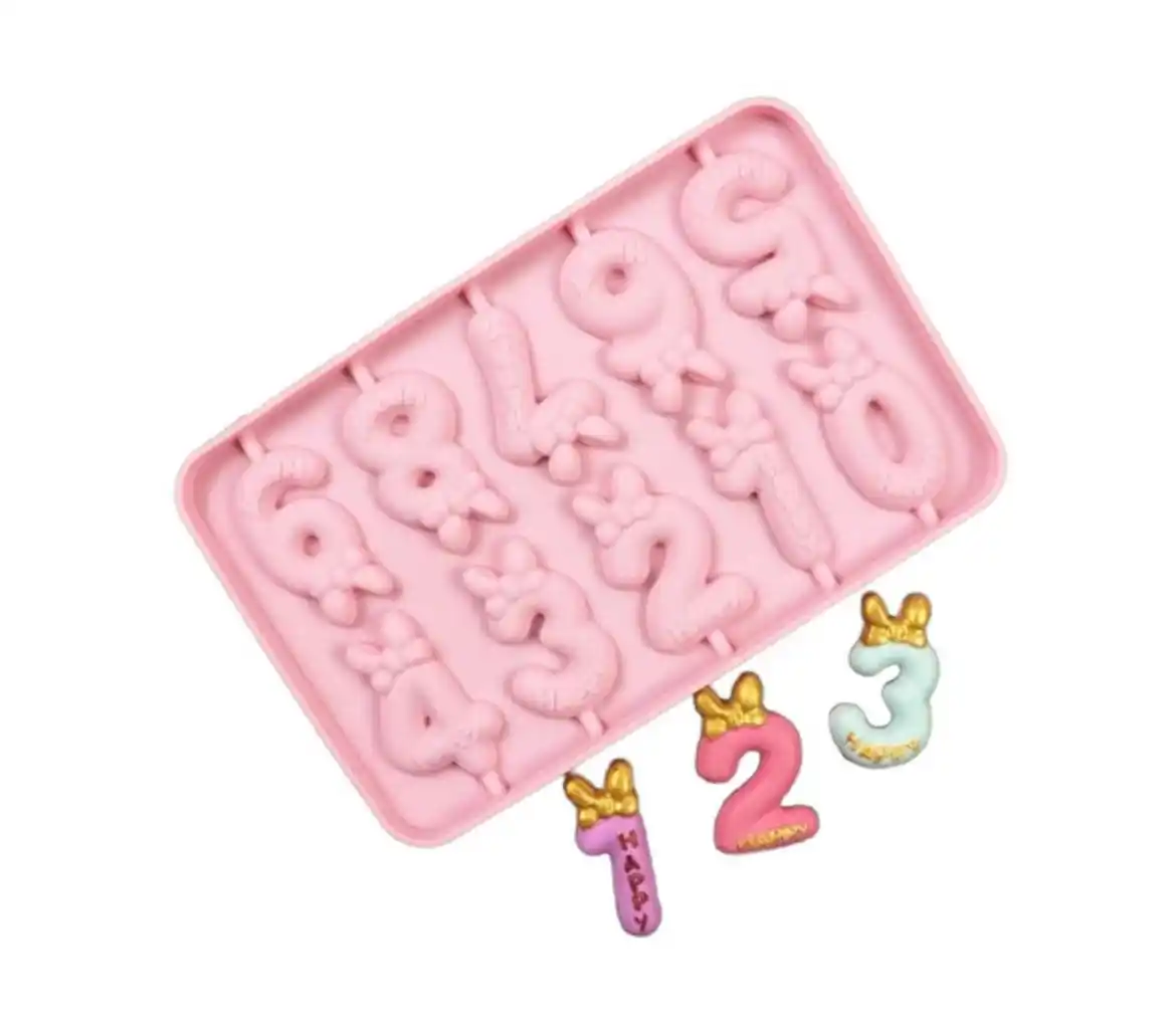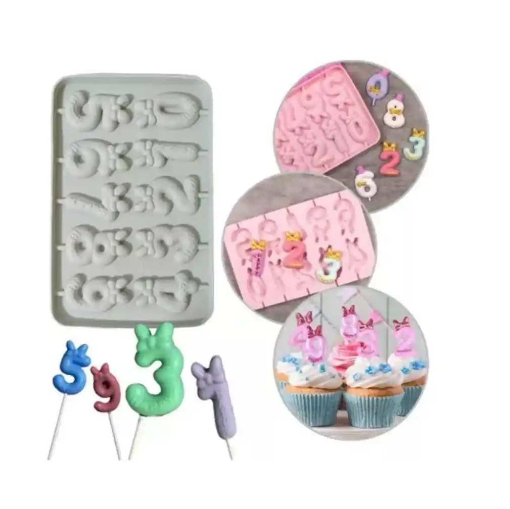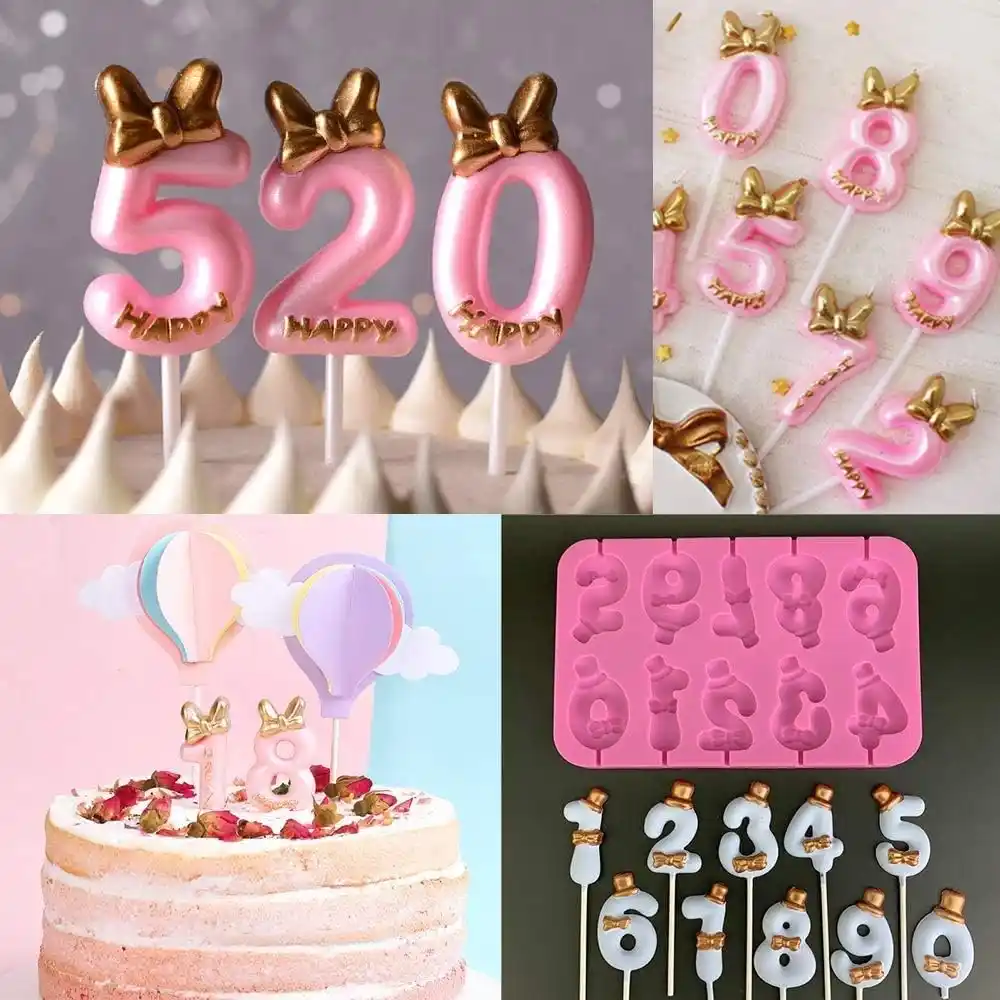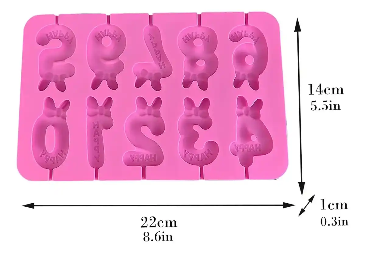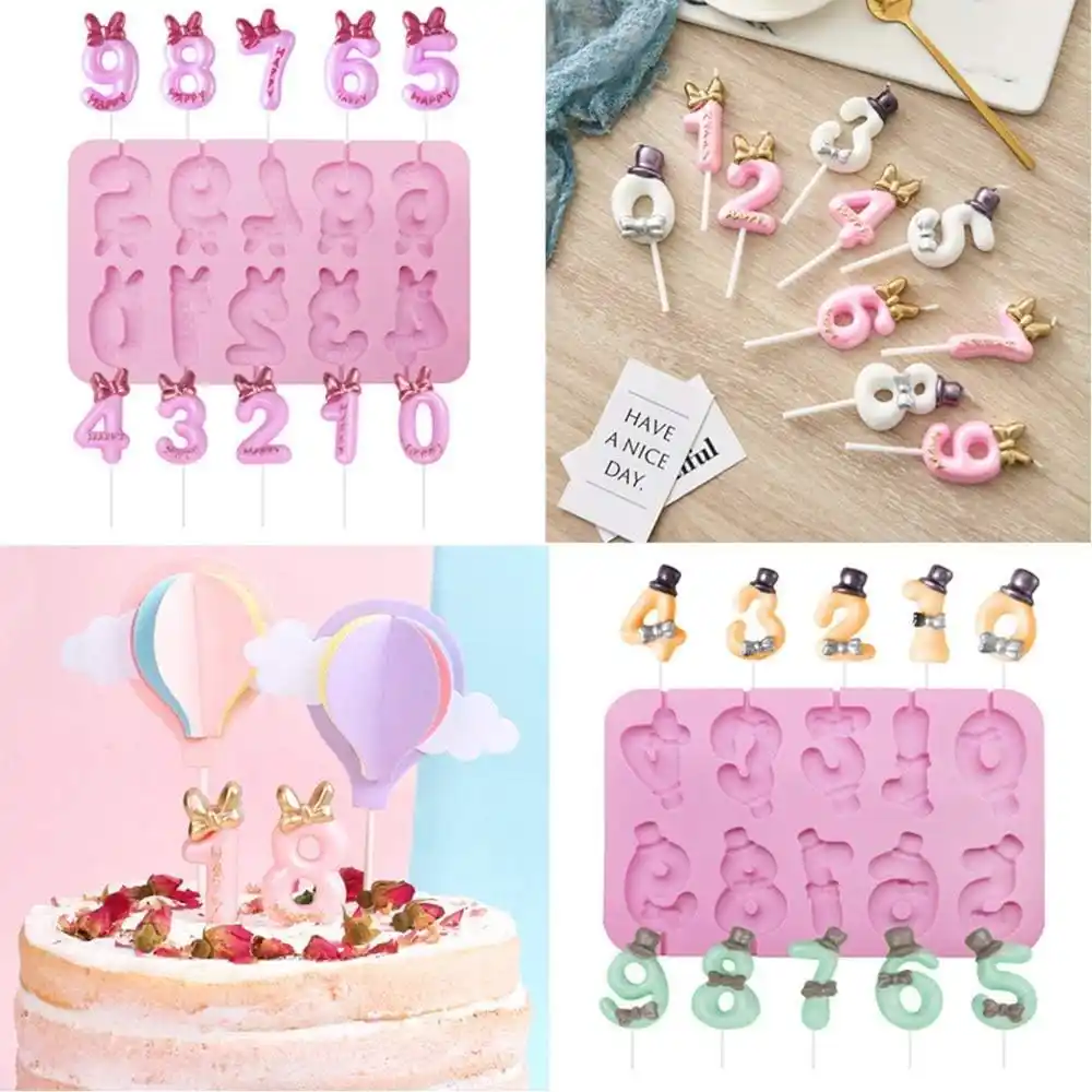 Moldes de silicón en forma de números con moño happy, cuentan con 10 cavidades, ideales para preparar una amplia gama de materiales comestibles y no comestibles, incluyendo pasta de azúcar, pasta de pétalos o mazapán, látex, fondant, adornos de galletas, artesanías, manualidades.